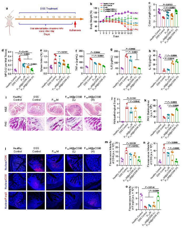 图3. 口服LNPs对DSS诱导的急性UC的治疗效果
