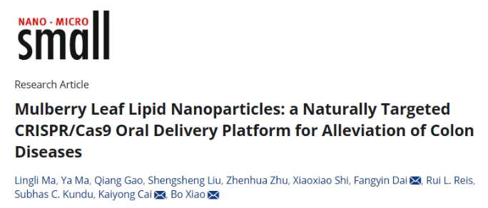 近日,肖波教授团队在Small发表题为“Mulberry Leaf Lipid Nanoparticles: A Naturally Targeted CRISPR/Cas9 Oral Delivery Platform for Alleviation of Colon Diseases”的研究论文。该研究利用FDA批准的Pluronic共聚物对桑叶脂质纳米囊泡(LNPs)进行表面修饰,从而提高了LNPs的胃肠道稳定性,并促进了其穿越结肠黏液屏障。桑叶脂质分子表面的天然半乳糖末端基团通过半乳糖受体介导的内吞作用,提高了巨噬细胞对LNPs的内吞效率。体外实验数据表明,Pluronic F127修饰桑叶脂质囊泡(P127M)的基因(GFP质粒)转染效率比商品化Lipofectamine 6000高2.2倍;不仅如此,载CD98质粒的P127M(P127M@pCD98)能显著降低CD98表达,下调促炎细胞因子(TNF-α和IL-6),上调抗炎细胞因子(IL-10)和促进巨噬细胞极化为M2表型。口服P127M@pCD98可通过缓解炎症、修复受损结肠上皮屏障和调节肠道微生物群来治疗UC和CAC。