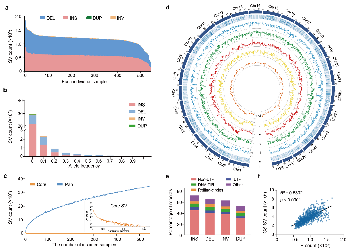 研究团队对1078份蚕种质资源(205份地方种,194份改良种,632份遗传材料,47份野桑蚕)进行了深度二代(短读长)测序,对其中545份代表性资源进行了三代(长读长)测序,产生55.57T基因组数据,组装了545个蚕的高质量基因组,对100个基因组进行了基因注释,鉴定到4300余万个SNP、930余万个Indel、340余万个结构变异(SV)和7308个新基因(家族),绘制了一个高精度家蚕泛基因组图谱。该超级泛基因组囊括了目前最全面的家蚕和野桑蚕基因组信息,是迄今全球动植物领域最大的长读长泛基因组。同时,对蚕的各种遗传变异、群体结构、人工选择和生态适应性及经济性状开展了深入的研究,取得丰硕的创新结果。研究论文“High-resolution silkworm pan-genome provides genetic insights into artificial selection and ecological adaptation”于2022年9月24日在国际名刊Nature Communications在线发表。
