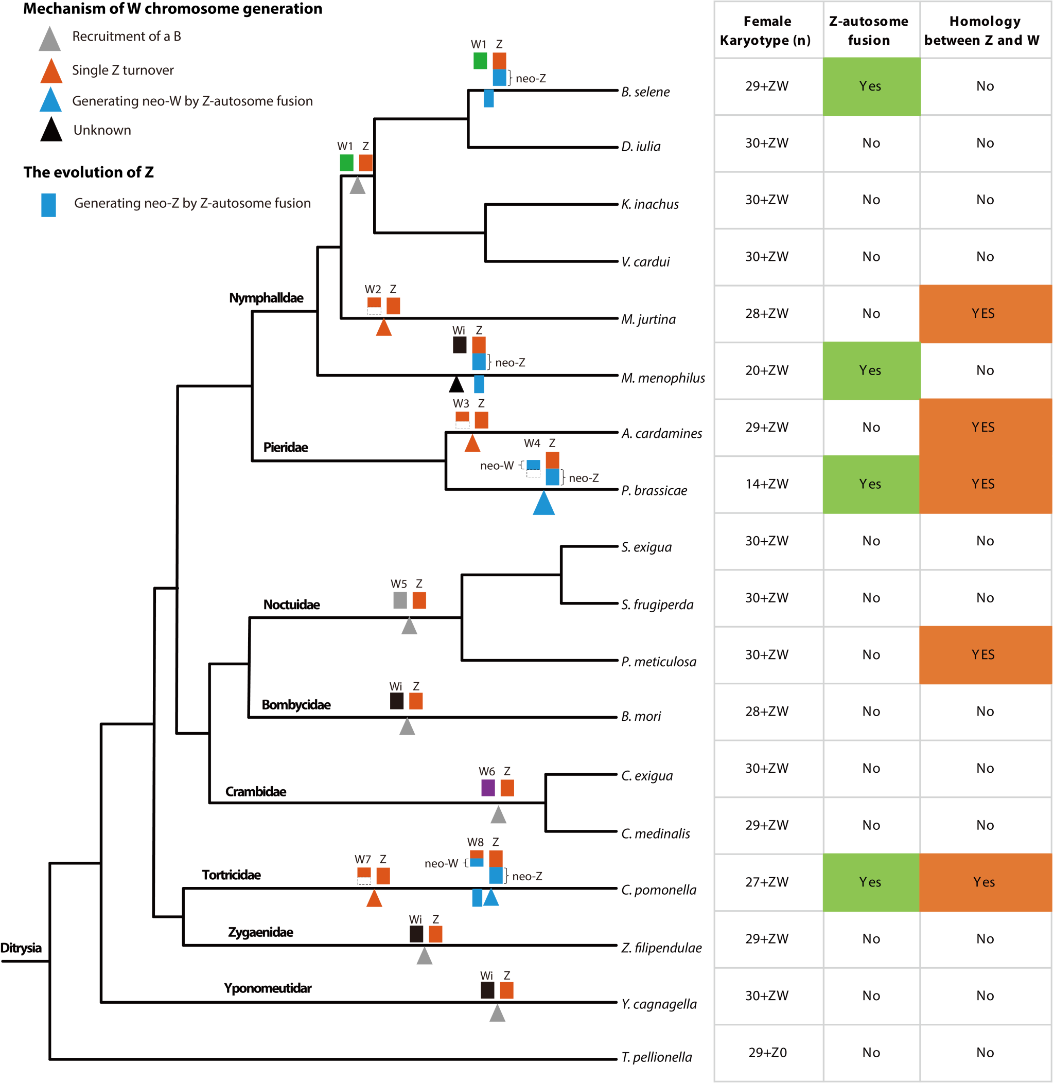 图6 鳞翅目17个昆虫W染色体的产生机制