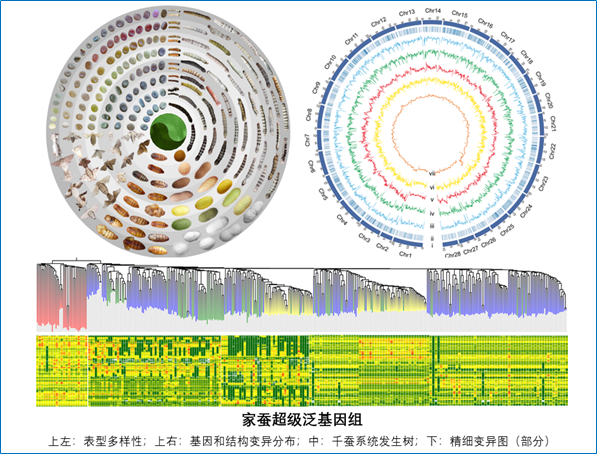 主任、国家蚕桑产业技术体系首席科学家代方银教授团队领衔完成的家蚕种质资源“千蚕基因组计划”成果——“家蚕超级泛基因组图谱”。