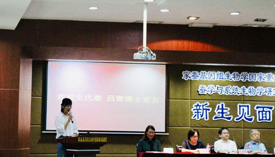 老生代表吕青博士生激励新生保持热爱,坚持选择,在忐忑中寻找自信,一定会有意想不到的收获。新生代表王曼辰表达了自己对研究生生活的美好向往,并用习近平总书记的话“当代中国青年是与新时代同向同行、共同前进的一代,生逢盛世,肩负重任”与同学们共勉。