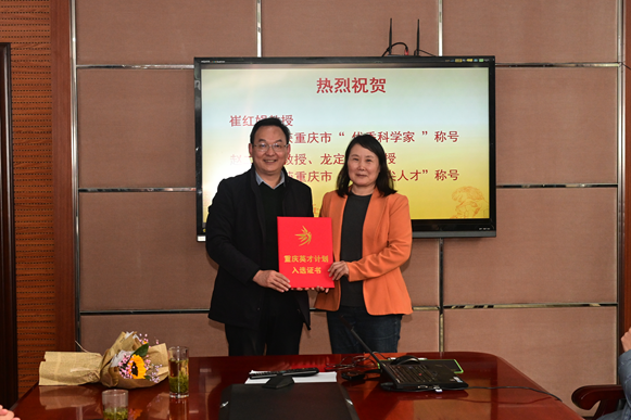 教师崔红娟教授、龙定沛副教授和赵二虎教授颁发了重庆英才计划入选证书。其中崔红娟教授荣获“重庆英才计划优秀科学家”称号,她是重庆市科技创新巾帼建功标兵、重庆市有突出贡献中青年专家和重庆市学术技术带头人等,获得重庆市自然科学二等奖,在畜牧学与医学等交叉学科领域取得了重要成果。龙定沛副教授和赵二虎副教授荣获“重庆英才计划青年拔尖人才”称号,其分别在Cell的子刊《Matter》和《Cell Reports》发表有关蚕丝新型材料和细胞代谢重编程等方面的重要研究成果,是age动漫