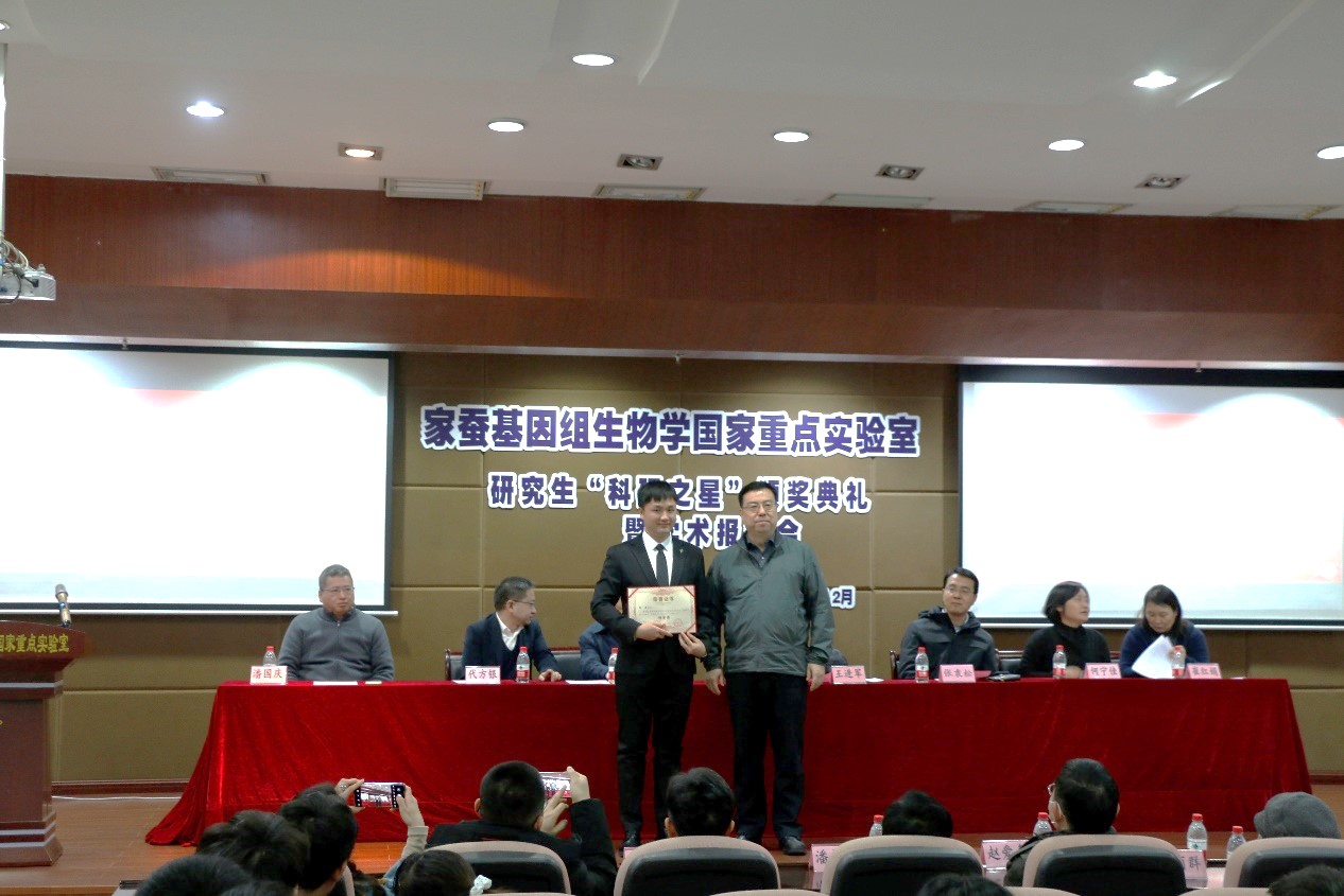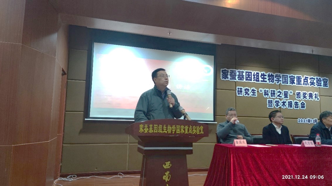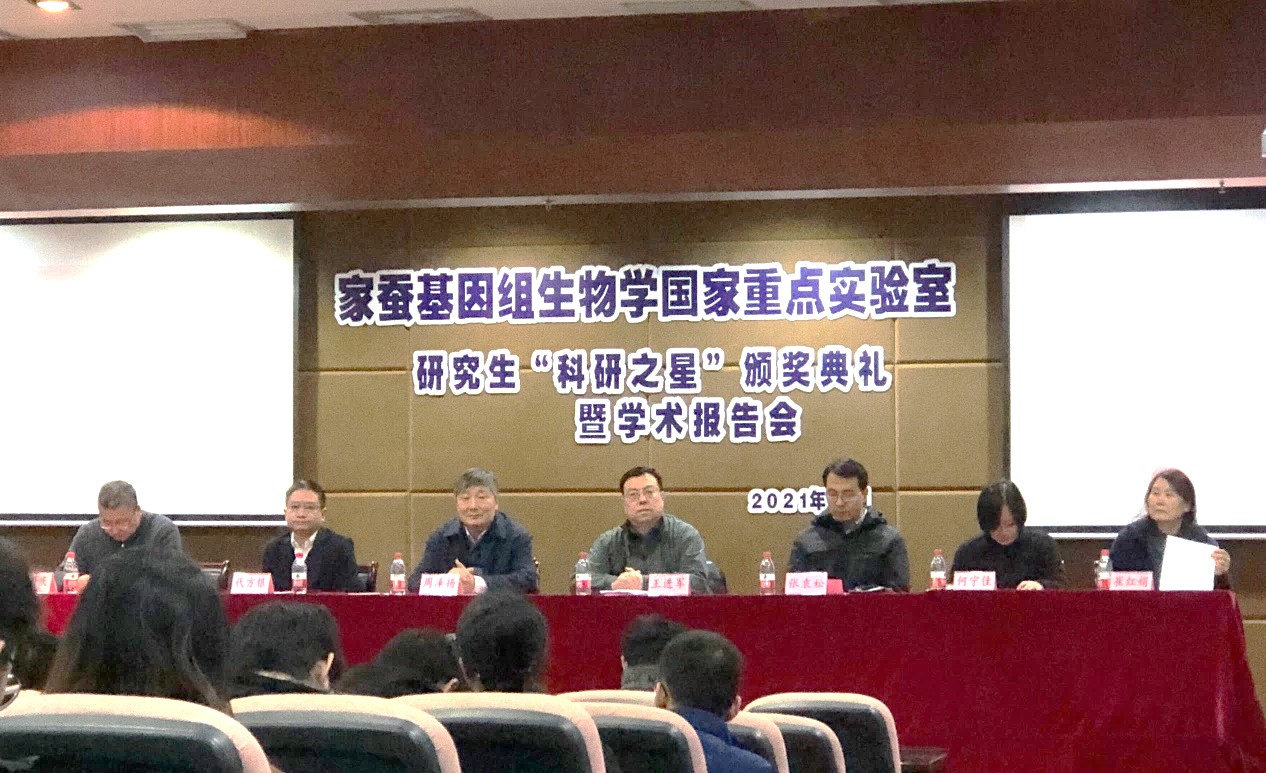 2020年度研究生“科研之星”颁奖典礼暨学术报告会在蚕学宫学术报告厅举行。学校副校长王进军,国重室学术委员会副主任周泽扬,蚕桑纺织与生物质科学学院党委书记张袁松等院领导,国重室主任、学院院长代方银,副主任何宁佳、崔红娟、潘国庆等age动漫