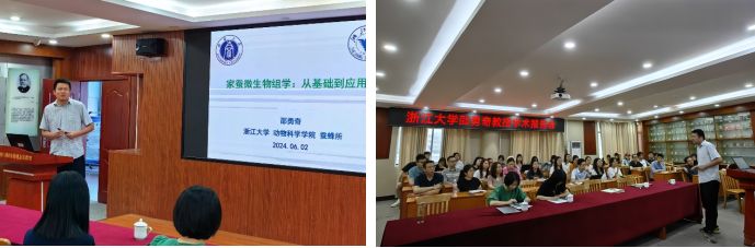邵勇奇研究员以“家蚕微生物组学:从基础到应用”为题,系统介绍了其课题组以家蚕等为模式,研究昆虫肠道微生物多样性、结构及对宿主抵抗农药的功能机制等方面的前沿工作,饱含创新思路,引人入胜。