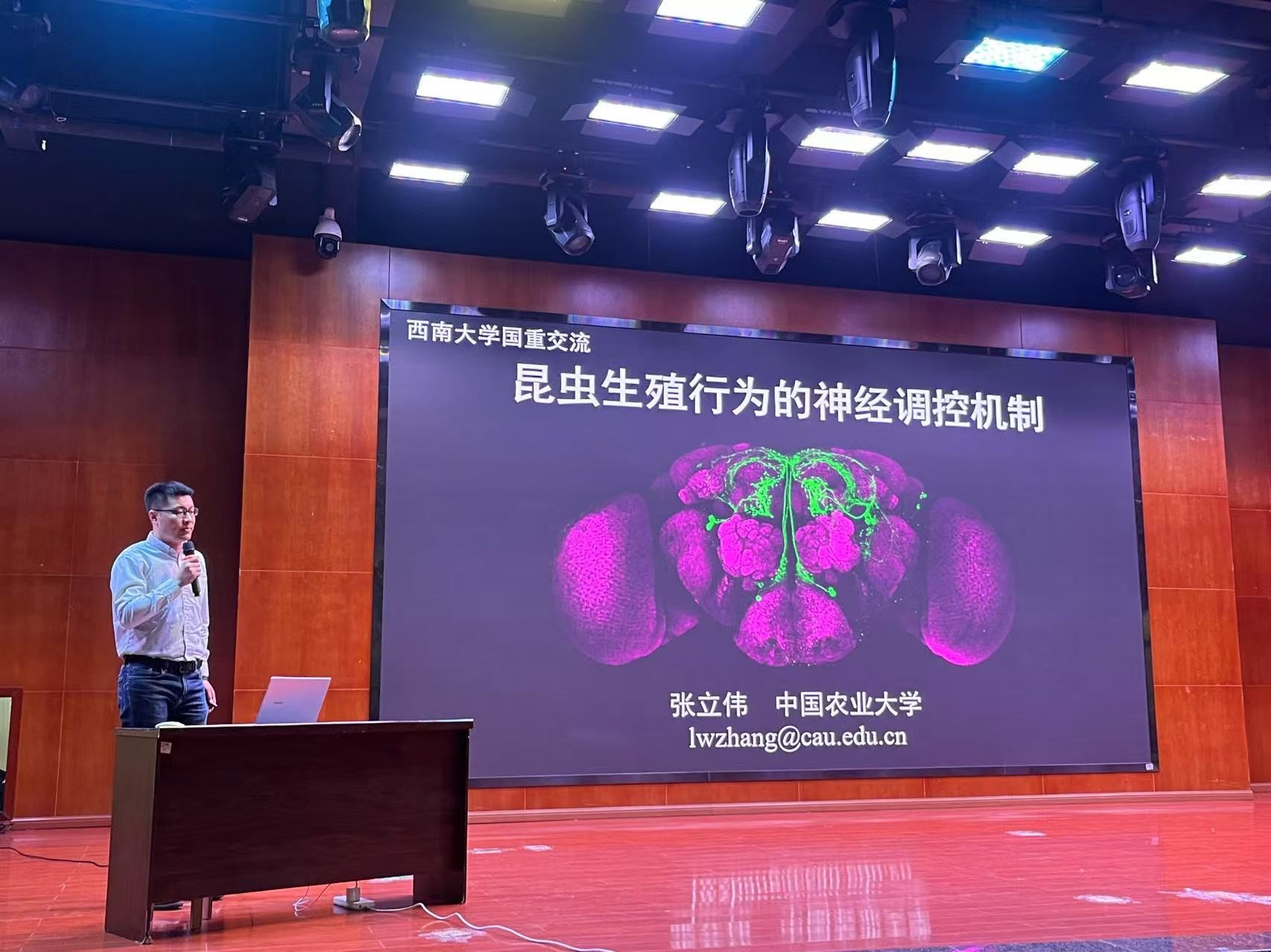 张立伟教授以“昆虫生殖行为的神经调控机制”为题,分享了其团队对雄性昆虫判定求偶对象性别差异的神经中枢机制的研究,以及对雌虫感知产卵地点硬度的机械力感觉神经机制的探索发现。三位专家的报告内容丰富、深入浅出,引发了在场师生的热烈讨论。大家踊跃提问,专家们耐心解答,现场学术氛围浓厚。