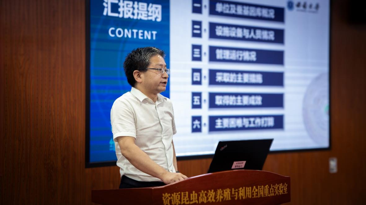 主任代方银教授向聂首席一行介绍了家蚕基因库的发展历程、人员队伍结构、资源保护利用、基因库运行和建设情况,汇报了研究团队基于遗传资源优势实施“千蚕泛基因组”计划研究所取得的成果及对种质创新的意义、育种发展等内容。