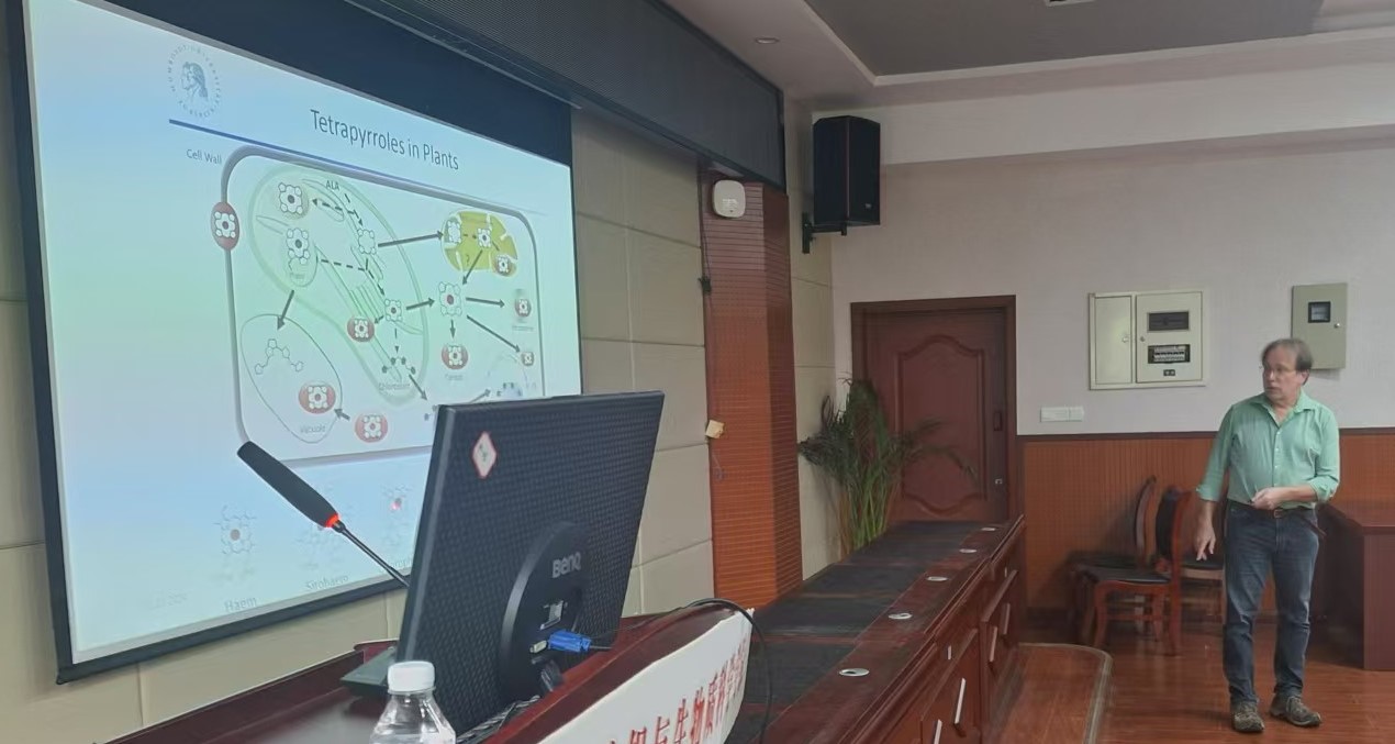 33教306报告厅进行了题为“Tetrapyrroles – pigments of life. Structure, Function and Metabolism of chlorophyll and heme”的专题学术报告会。侯志伟老师主持了学术报告会。Grimm教授深入浅出地介绍了植物中四吡咯这一类重要的生物分子,重点阐述了叶绿素和血红素在生产中的应用及其在光合作用中的代谢和功能,并报告了其课题组在植物四吡咯生物合成方面最新的研究进展,引起在场师生的强烈兴趣和热烈讨论。