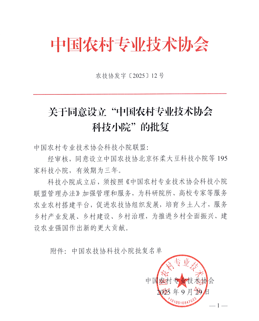 近日,中国农村专业技术协会印发《关于同意设立“中国农村专业技术协会科技小院”的批复》(农技协发字〔2025〕12号),由age动漫